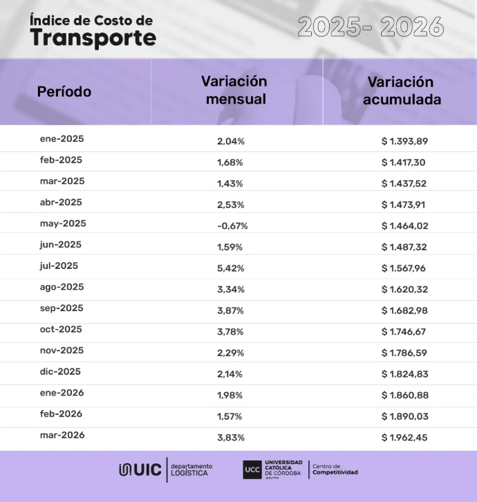 Índice de Costo de Transporte de Córdoba- Marzo 2026